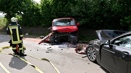 Noch ist vollkommen unklar, warum es am Samstagnachmittag zu einem Frontalzusammenstoß zwischen einem Kleinbus und einem Pkw kam, der insgesamt sieben Schwerverletzte forderte, darunter vier Kinder.