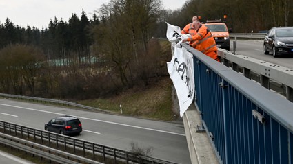 Da Werbeplakate an Autobahnen wegen der hohen Ablenkungsgefahr verboten sind, schritten die beiden Mitarbeiter der Autobahnmeisterei sofort zur Tat, sie fuhren während ihrer üblichen Kontrollfahrt von der Autobahn ab und fuhren auf der Oberseite der Brücke bei Langenau.