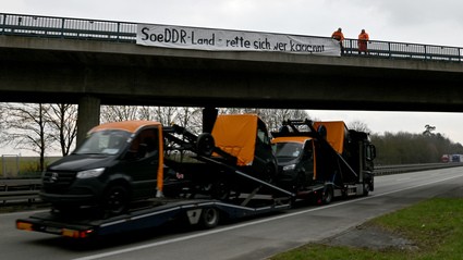 Nur wenige Stunden hingen zwei Schmäh-Plakate gegen Ministerpräsidenten an einer Brücke über die Autobahn 7 bei Langenau. Nachdem Mitarbeiter der Autobahnmeisterei die Plakate bei einer turnusmäßigen Kontrollfahrt entdeckten, entfernten sie die Plakate sofort.