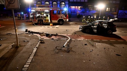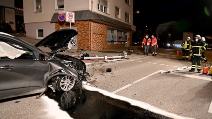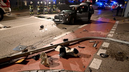 Auf der B28 in Blaustein hat ein Auto bei einem Unfall einen Ampelmast umgerissen.