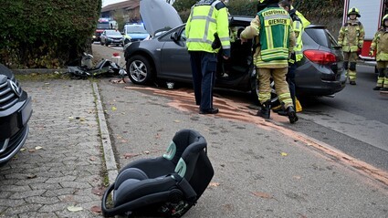 Bei einem Unfall auf der Landstraße bei Giengen an der Brenz sind drei Menschen schwer verletzt worden. Die Polizei teilte am Samstag mit, dass ein 20 Jahre alter Mann am Freitagabend zu schnell eine Kurve nahm und dann auf die Gegenfahrbahn kam. Sein Wagen kollidierte mit dem entgegenkommenden Auto. Dessen 87-jähriger Fahrer und seine 89 Jahre Mitfahrerin wurden schwer verletzt. Die Frau musste von der Feuerwehr aus dem Auto befreit werden.