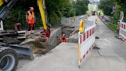 Die Stadtwerke verlegen seit Montag zwischen Ulm-Lehr und dem Junginger Industriegebiet Franzenhauser Weg zusätzliche Leitungen für Gas, Strom und Kommunikation. Um die Bundesstraße 10 mit den Leitungen zu unterqueren, wird dort nicht die Fahrbahn aufgerissen, sondern mit einer Spülbohrung Platz für die Leitungen geschaffen. Die Fahrbahn bleibt so unbeschädigt und der Verkehr kann auf der Hälfte der Spuren auch während der Bauarbeiten weiter fließen.