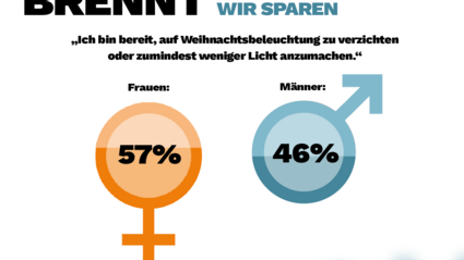 Und geht es nach den Frauen bleibt dieses Jahr die Weihnachtsbeleuchtung aus. 46 Prozent der Männer und 57 Prozent der Frauen wollen dieses Jahr an der funkelnden Weihnachtsbeleuchtung sparen.