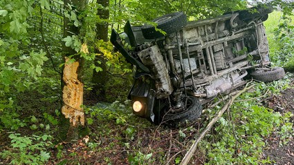 Zur Bergung des Fahrzeuges musste die Landesstraße rund drei Stunden gesperrt werden. An dem Geländewagen entstand Totalschaden.