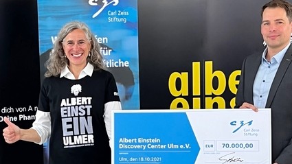 Als einer der „Ersten 11“ Hauptsponsoren unterstützt die Carl-Zeiss-Stiftung das Albert Einstein Discovery-Center in Ulm mit 70.000 Euro.