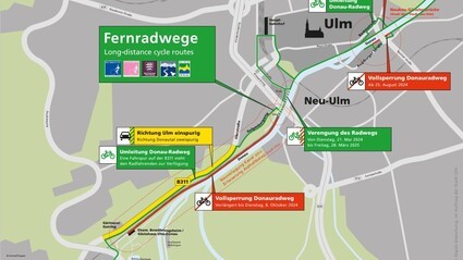 Nach der Vollsperrung der B10 bleibt die Abfahrt zur Söflinger Straße bis zum 26. August 2024 gesperrt, um die neue Fernwärmeleitung anzubinden. Ab Montag, 19. August 2024, bis zum 26. August 2024, werden die Arbeiten westlich der B10 fortgesetzt.