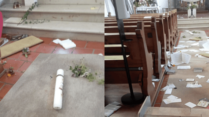 Noch unbekannte Vandalen haben In der St.-Pantaleon-Kirche in Walpertshofen bei Mietingen gewütet. Sie rissen Dachziegel aus der Mauer, zerkratzten die Eingangstür der Kirche, warfen Stühle und Blumen um und zerfledderten Gesangs- und Gebetsbücher. Außerdem zündeten sie Kerzen an und verteilten das Wachs auf dem Boden und den Sitzbänken.