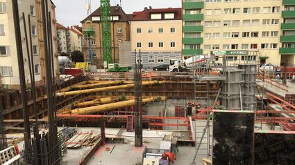 Doch nicht immer herrschte Friede, Freude, Eierkuchen. In die Schlagzeilen war das Großprojekt auch durch deutlich sichtbare Risse am Nachbarhaus gekommen. Das räumt Berthold Stier, der Geschäftsführer der Entwicklungsgesellschaft Neu-Ulm, auch unumwunden ein. Das Mietshaus ist inzwischen zum Teil entmietet worden, das heißt der Hausteil zur Großbaustelle hin, ist unbewohnt. Was damit passiert, ist noch ungewiss. Im Moment läuft ein Beweisverfahren, das klären soll, was dort genau passiert ist und was man jetzt noch machen kann. Das sollen jetzt Sachverständige klären. Zurück zum Heiners. In Herbst 2025 soll der moderne Hingucker im Zentrum der Stadt fertig sein. Die Baukosten werden aktuell mit rund 63 Millionen Euro angegeben.