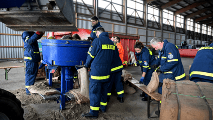 Das Technische Hilfswerk (THW) Neu-Ulm hat am Freitagnachmittag damit begonnen, Sandsäcke gegen Hochwasser zu füllen. In der Halle eines Wertstoffhändlers konnten die ehrenamtlichen Helfer wettergeschützt rund 40 Tonnen Sand in 2 000 bis 3 000 handliche Sandsäcke umfüllen. Weitere 1 000 Tonnen Sand haben die Neu-Ulmer in einer Sandgrube reserviert und können bei Bedarf noch weitere Säcke füllen. Die Feuerwehren des Landkreises Neu-Ulm und das THW haben seit Jahren leere Sandsäcke bevorratet, um bei einem drohenden Hochwasser schnell reagieren zu können. Nach den Worten von THW-Ortsbeauftragten Thomas Kloo unterstützt das THW die Feuerwehrleute, die derzeit den Zustand der Deiche entlang der Bäche und Flüsse im Landkreis überprüfen.