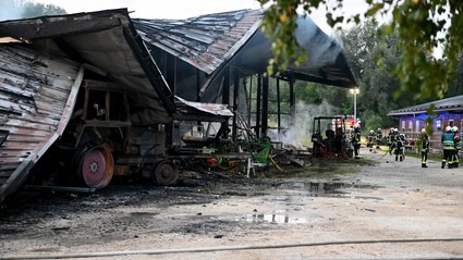 Autofahrer hatten um etwa drei Uhr morgens die Flammen bemerkt und die Feuerwehr gerufen. Die konnte die Zerstörung der Reithalle nicht mehr verhindern. Die Halle brach zusammen.
