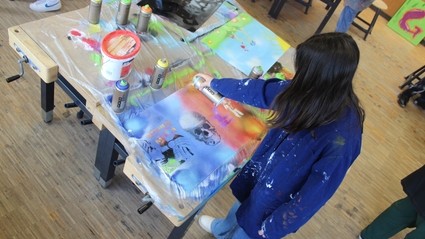 Giuseppe Concialdi ist Graffiti-Künstler aus Nersingen. Er bietet einen Graffiti-Kurs bei den Projekttagen an. In seinem Workshop entsteht aber noch etwas Besonderes. Die besprühten Leinwände der Schüler sollen zusammengefügt und versteigert werden. Dadruch soll das Projekt "Schule mal anders" am Leben gehalten werden. Auch Sarah Settele wünscht sich, dass das Projekt an anderen Schulen angeboten werden kann und nächstes Jahr wieder an der Realschule in Pfuhl stattfindet.
