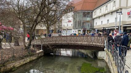 Die Stadt Ulm hat heute ein innovatives Bauprojekt abgeschlossen: Die neue Fußgängerbrücke am Lautenberg, die über die Kleine Blau führt, wurde offiziell eröffnet. Zahlreiche Gäste, darunter Vertreter der Stadtverwaltung, Ingenieure, interessierte Bürger und auch Stadträte nahmen an der Feier teil und konnten das Bauwerk aus nächster Nähe begutachten.