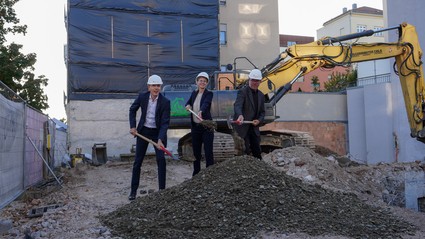 Es hat viele Jahre gedauert, doch jetzt können die Bauarbeiten starten. Dort wo früher das traditionsreiche Bettenhaus Renftle stand, wird ein Neubau entstehen. Zuvor hatte die Stadt die Baugenehmigung erteilt. Rund 18 Monate soll nun am Petrusplatz gebaut werden, bis das siebengeschossige Gebäude dann Mitte 2025 fertig sein soll. Die Sparkasse Ulm ist nicht nur Bauherrin, sondern wird auch die zukünftige Eigentümerin des P3 bleiben. Das Ziel ist eine gemischte Nutzung: Insgesamt sollen 19 Wohnungen entstehen, die vermietet werden, außerdem soll auch Gastronomie ins P3 einziehen und es soll Gewerbeflächen geben. Die genaue Aufteilung kann erst nach Fertigstellung des Gebäudes erfolgen. Zwar gäbe es schon konkrete Interessenten, die Gespräche mit der Sparkasse laufen im Moment allerdings noch. Im Rahmen des offiziellen Spatenstichs zeigten sich die alle Beteiligten sehr froh darüber, dass das Bauvorhaben endlich Fahrt aufnehmen kann: