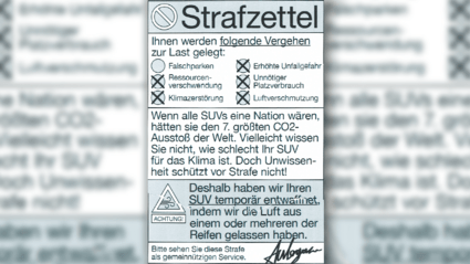 Hintergrund der Aktion sei die enorme Umweltschädlichkeit von SUVs. Laut Verfassern verbrauchen diese "nicht nur Unmengen an knappen Ressourcen und Energie in der Herstellung, sondern sind auch für unnötig viele Emissionen verantwortlich."