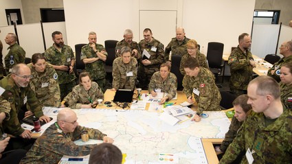 „Wir hoffen, dass wir das nie erleben“, gibt Oberstarzt Dr. Michael Clauss, der Übungsleiter, als Motto aus. Doch die NATO übt die Koordination mit ihren 32 Partnerländern, um alle notwendigen Transporte abwickeln zu können. Große Landkarten liegen auf den Tischen, Linien zeigen Transportwege und dann gibt es Massen an Jetons. Jeder dieser Chips ist beschriftet mit Verwundetenanzahl, Verletzungsschwere und Heimatland. Dazu gibt es Karten mit Hospitalschiffen, Krankentransportfahrzeugen und Flugzeugen, auf denen jeweils die Transportkapazitäten stehen.