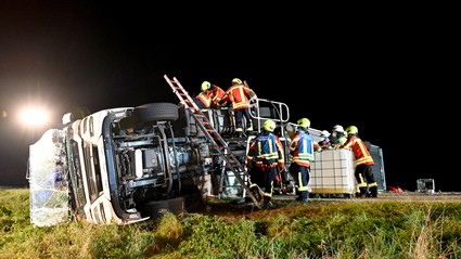 Mittelschwere Verletzungen erlitt ein Lastwagenfahrer bei einem Verkehrsunfall in der Nacht zum Montag in der Nähe von Nellingen (Alb-Donau-Kreis).